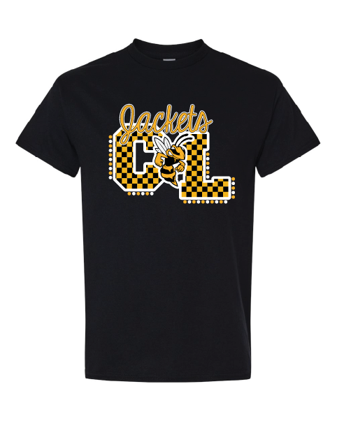 Bring bold energy to your Yellow Jackets spirit with the Jackets CL checkered design! Featuring a large black-and-gold checkered “CL” outlined in dots and accented by the Jackets script and mascot, this standout design is a true show of school pride.