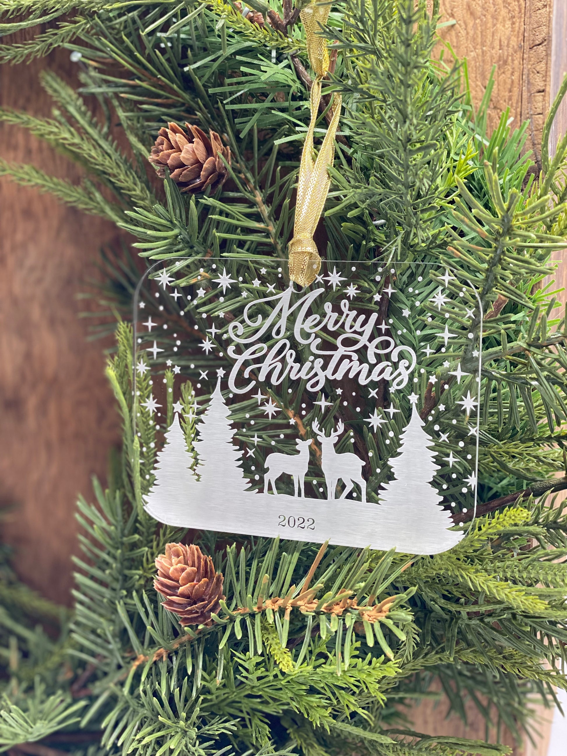 Our "Deer in the Snow" acrylic ornament is the perfect decoration for your Christmas tree and a memorable keepsake for years to come.