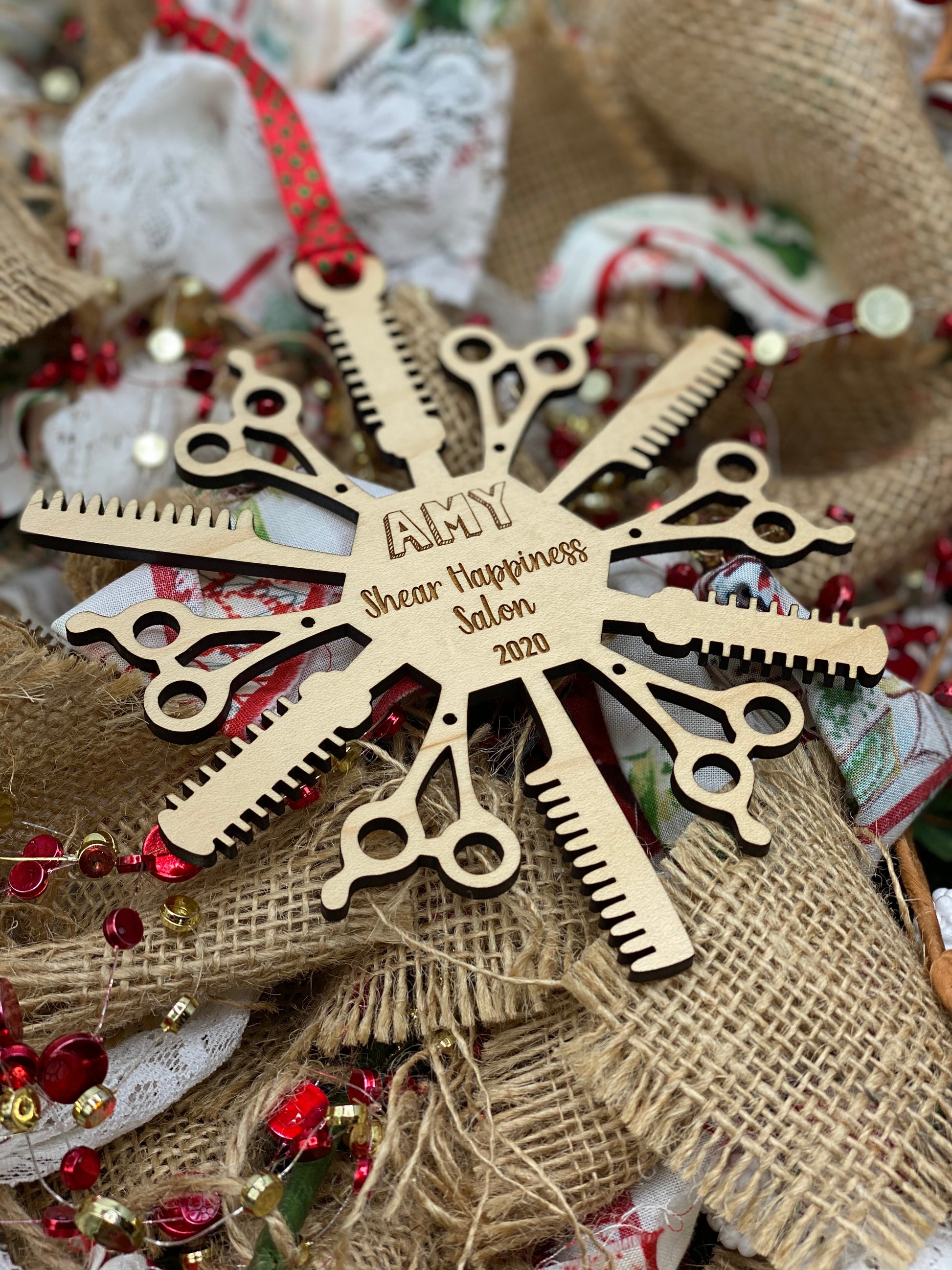 Hairdresser Snowflake wood ornament