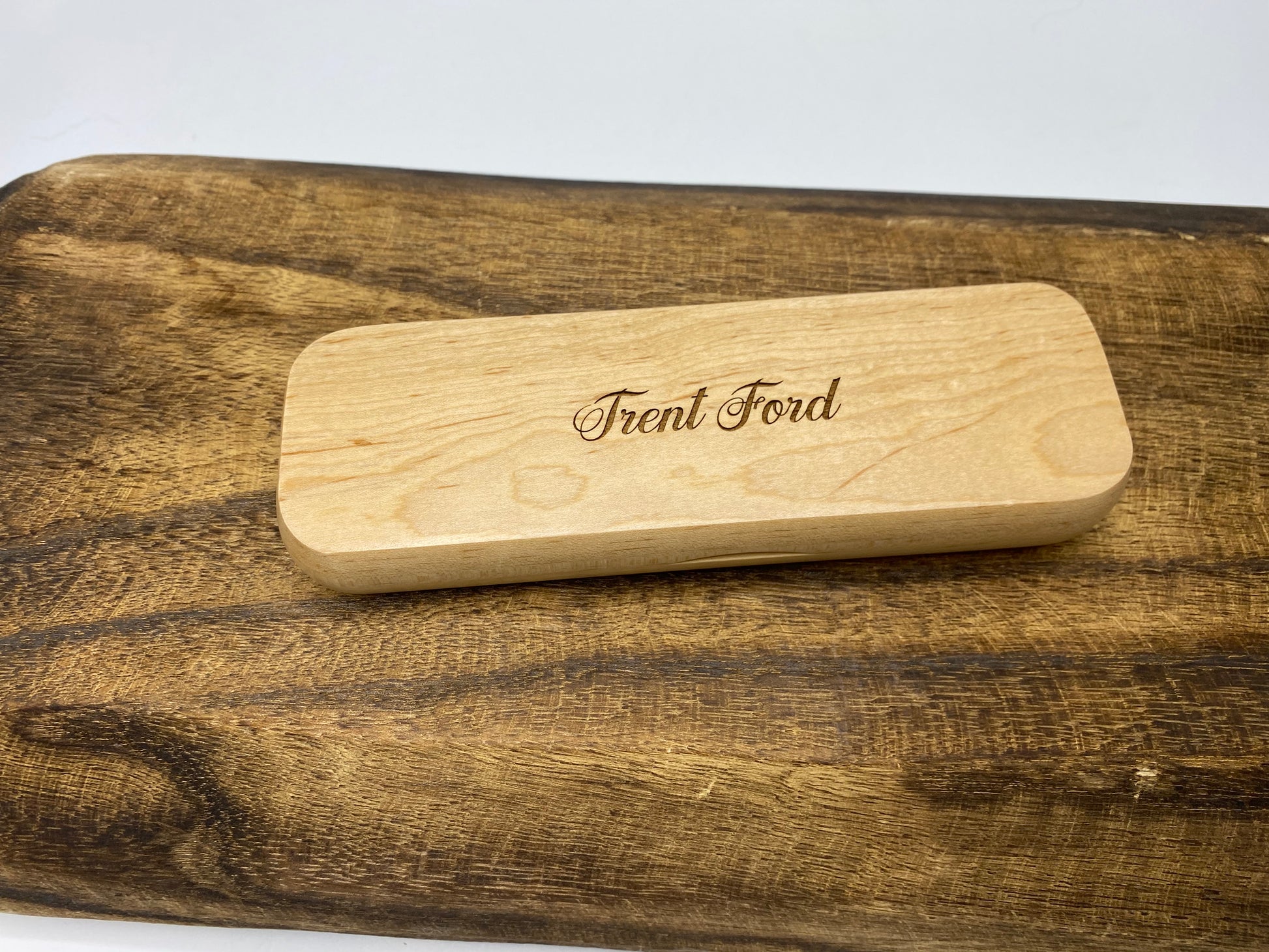Lovely solid maple pen/ pencil case. Engraved with the custom text of your choice (maximum 2 lines). Case is available in a single or double option, to hold one or two writing instruments.