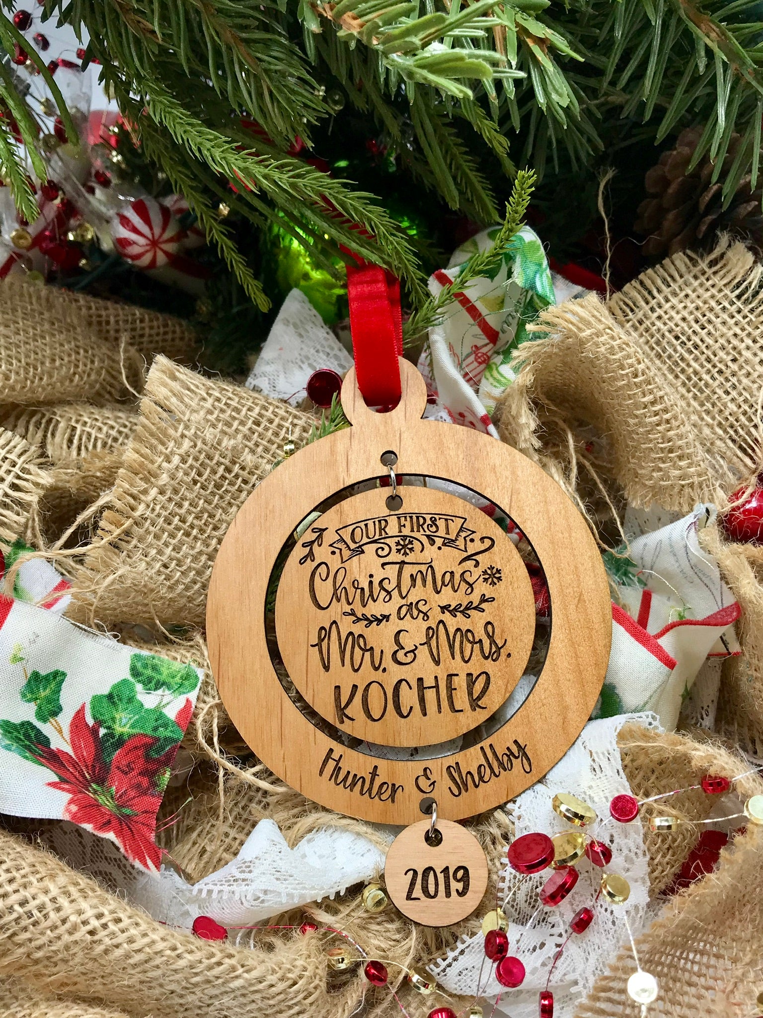 Our First Christmas as Mr. & Mrs. (Last Name) Wood Ornament